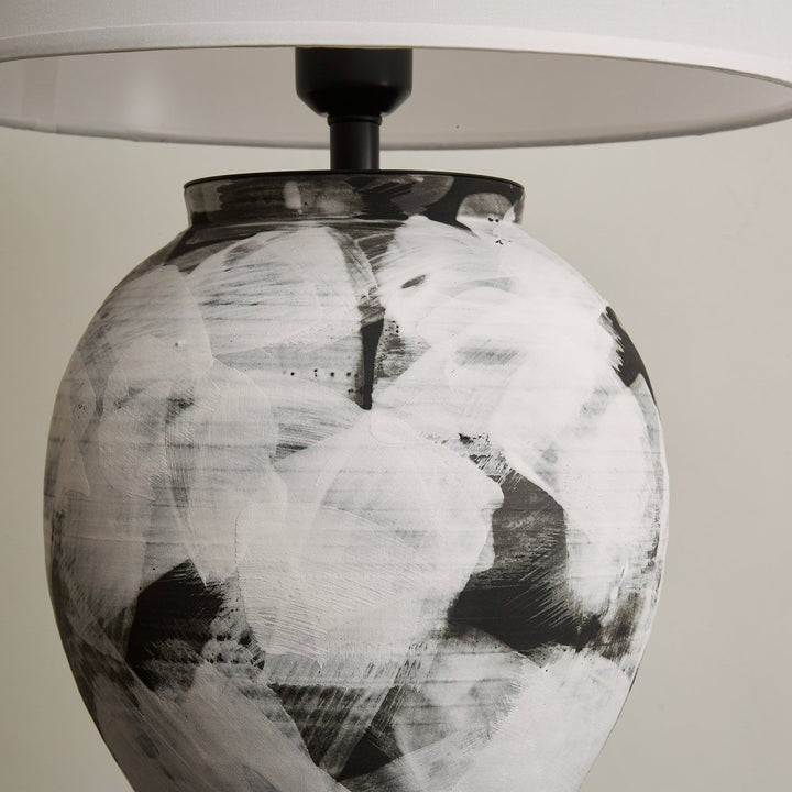 Elevate your space with this hand-painted ceramic table lamp, featuring bold black-and-white brushstrokes and a crisp white fabric shade. Its minimalist design delivers clean, diffused light and a striking artistic flair for any modern interior.