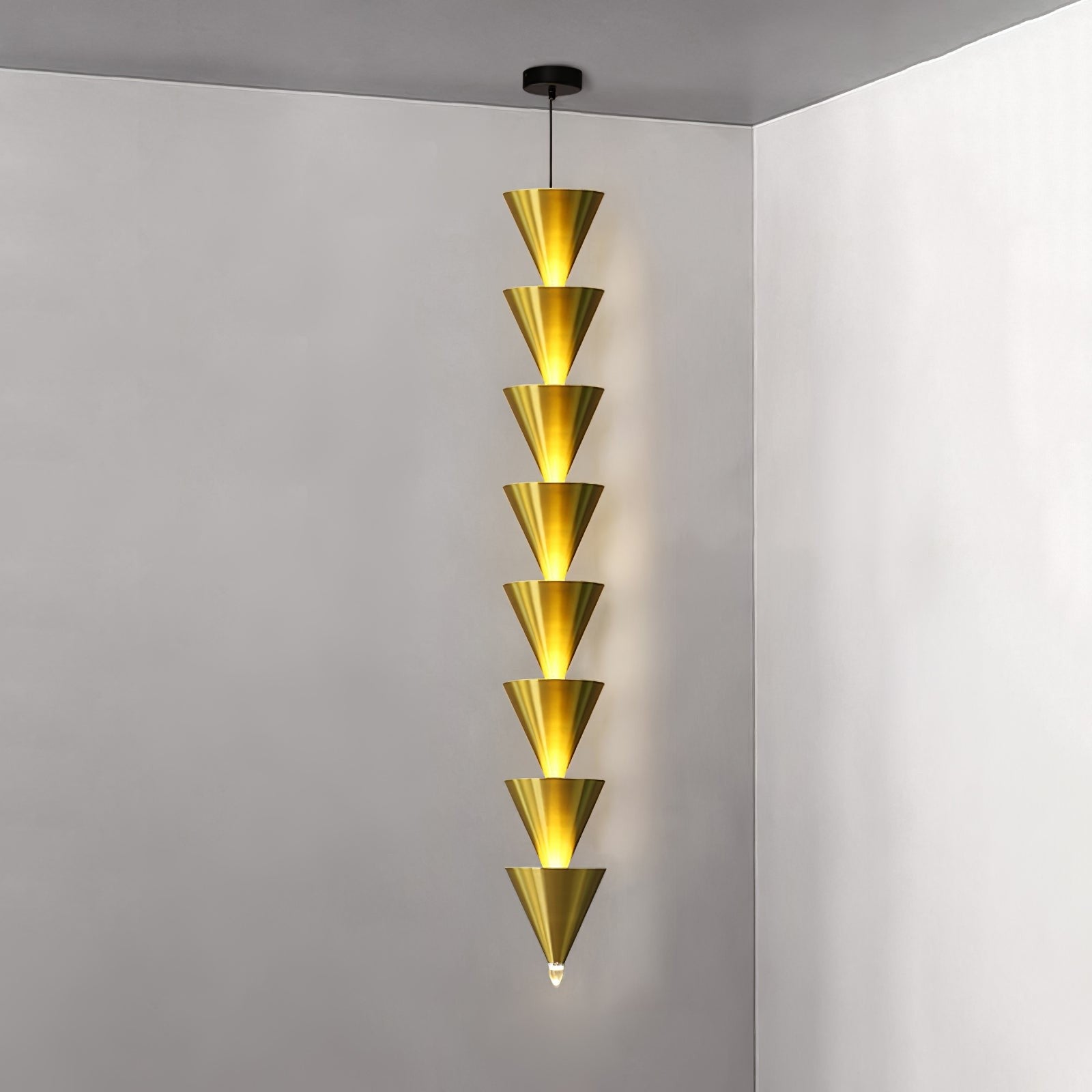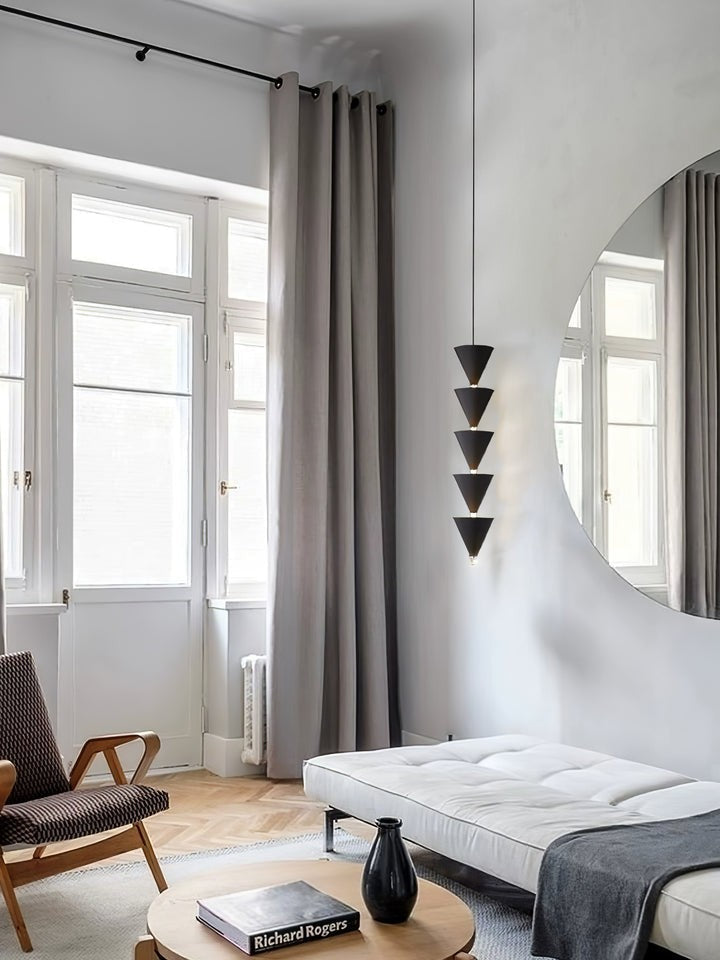 Enhance your interior with a modular, multi-cone pendant light featuring integrated LED illumination and adjustable height design.