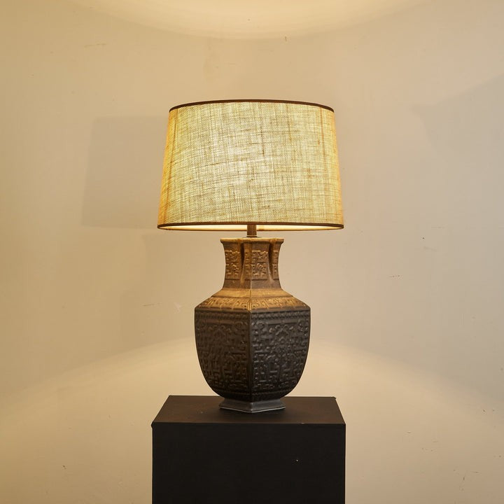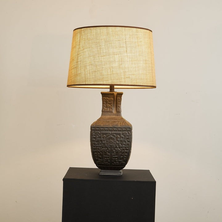 Antique Bronze Ceramic Table Lamp with Linen Shade