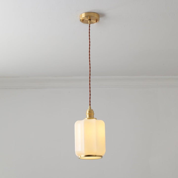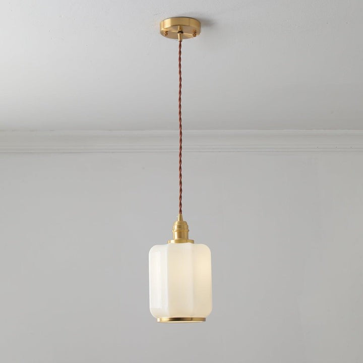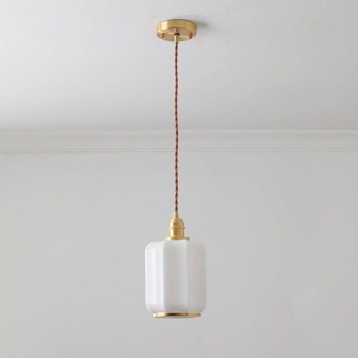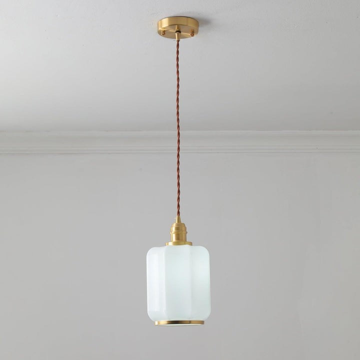 Elevate your space with this brass funnel pendant light featuring a sleek white glass shade and adjustable hanging height, perfect for kitchens, dining areas, and covered outdoor spots.