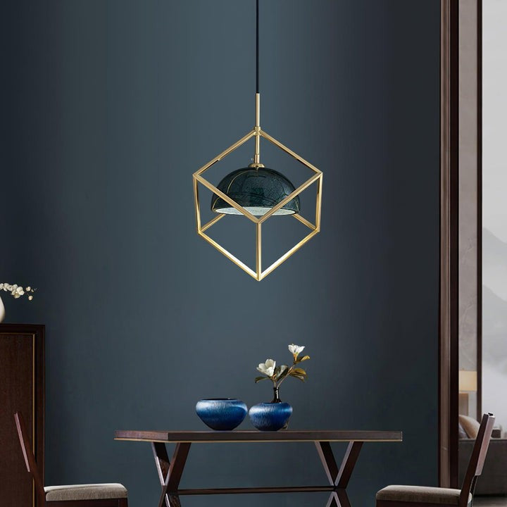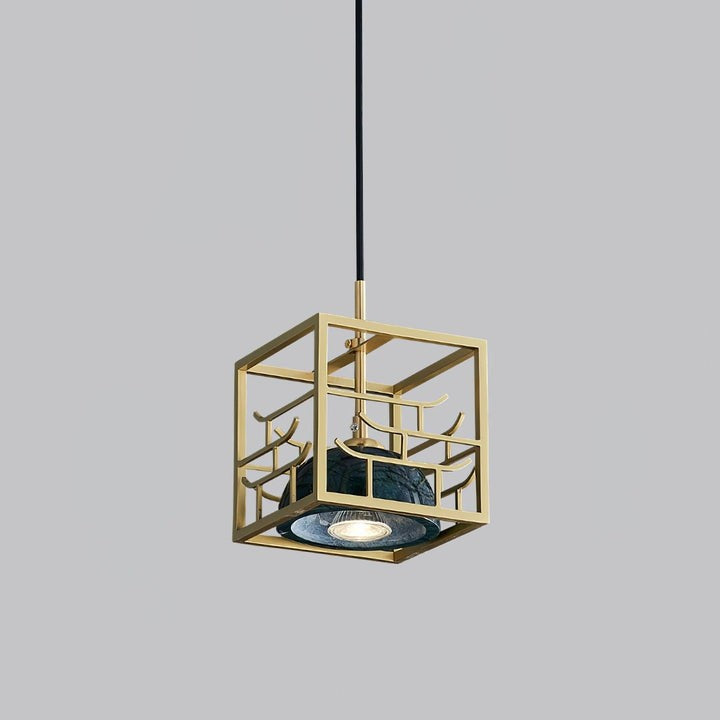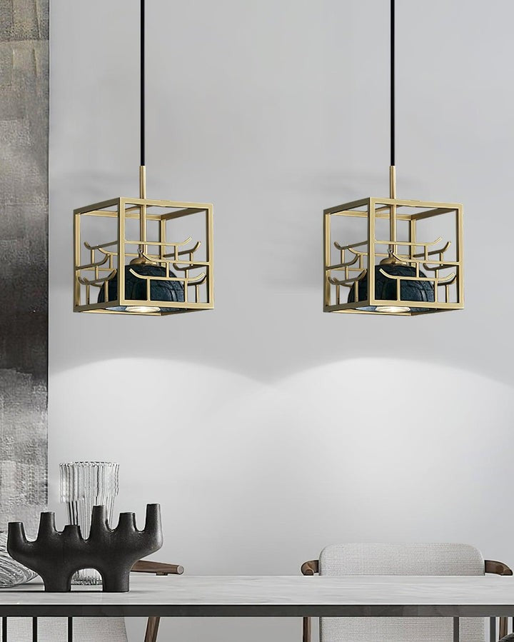 Brass & Marble Square Lantern Pendant Light