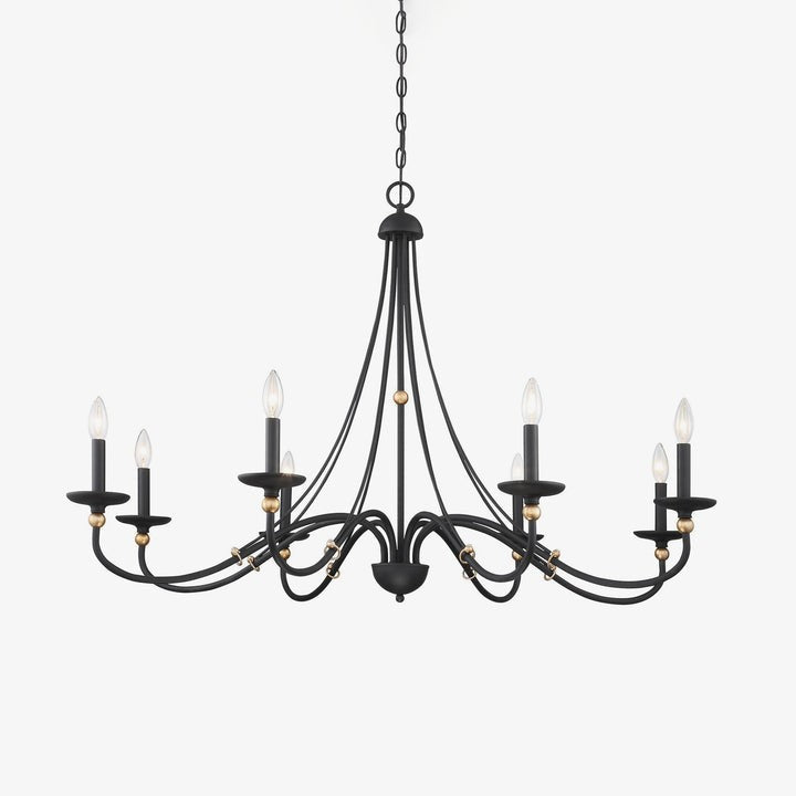 Elevate your interior with this orbit-inspired brass chandelier, featuring multiple light heads and a clean, symmetrical silhouette for balanced illumination and a captivating focal point.