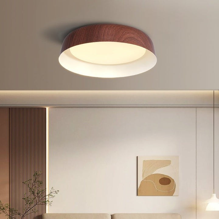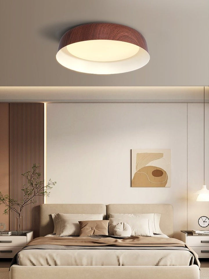 Enhance your interior with a sleek, curved wood-grain LED ceiling fixture that delivers soft, diffused illumination. Ideal for modern living spaces, this energy-efficient design brings warmth and style to any room.