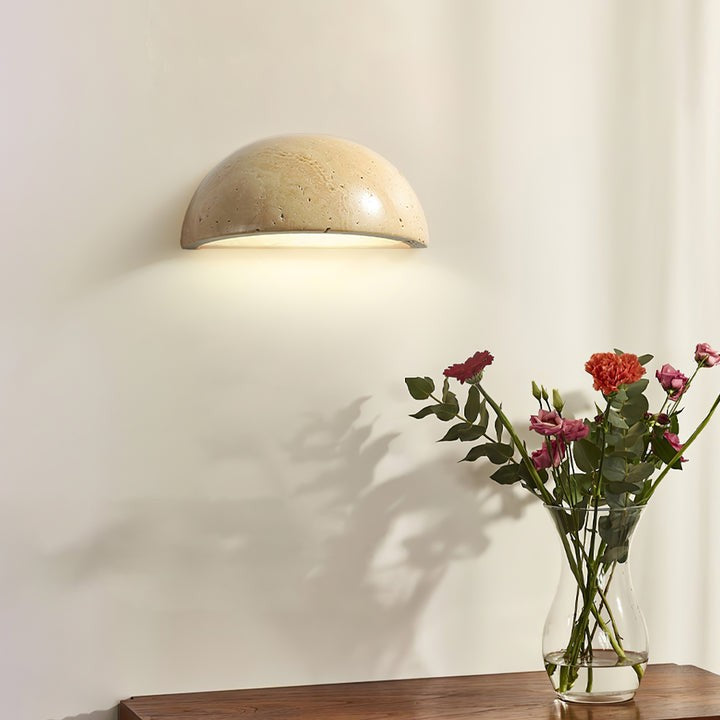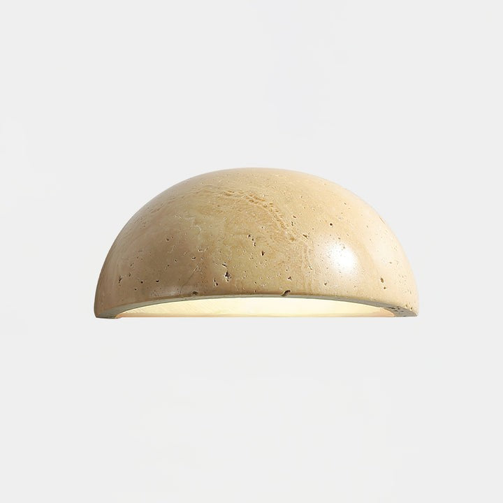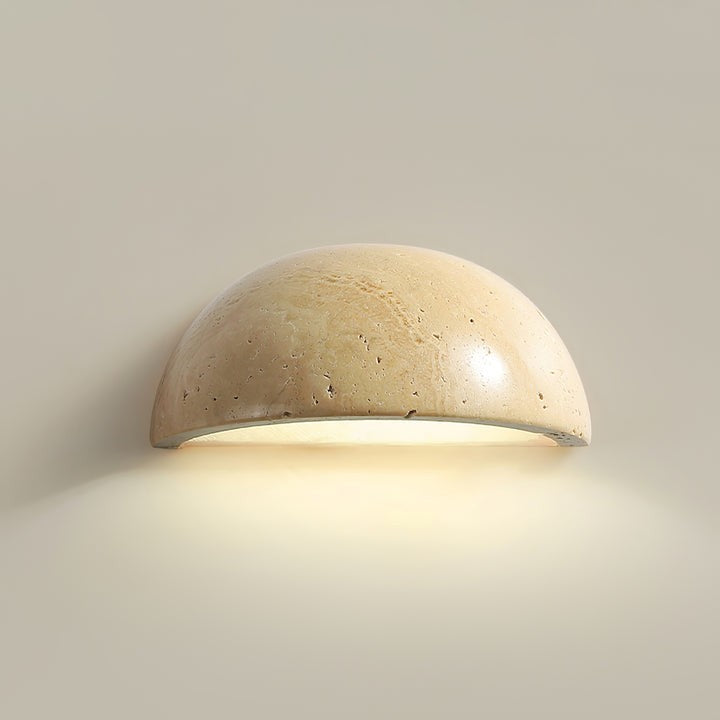 Bring warm, ambient illumination to your indoor spaces with this half-dome travertine wall sconce, featuring natural texture and a soft dusk-inspired glow. Perfect for hallways, living rooms, or bedrooms, this design blends organic materials with a sleek profile for lasting style and comfort.