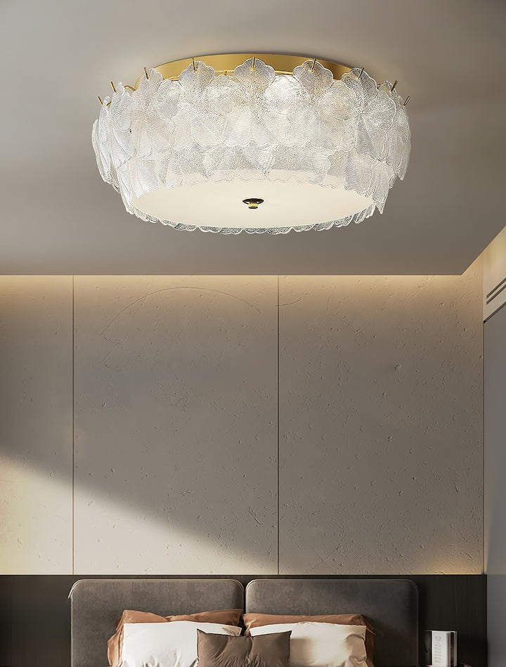 Elevate your interior with a decorative glass bloom ceiling fixture that offers warm, ambient LED illumination for living rooms, bedrooms, or dining areas.