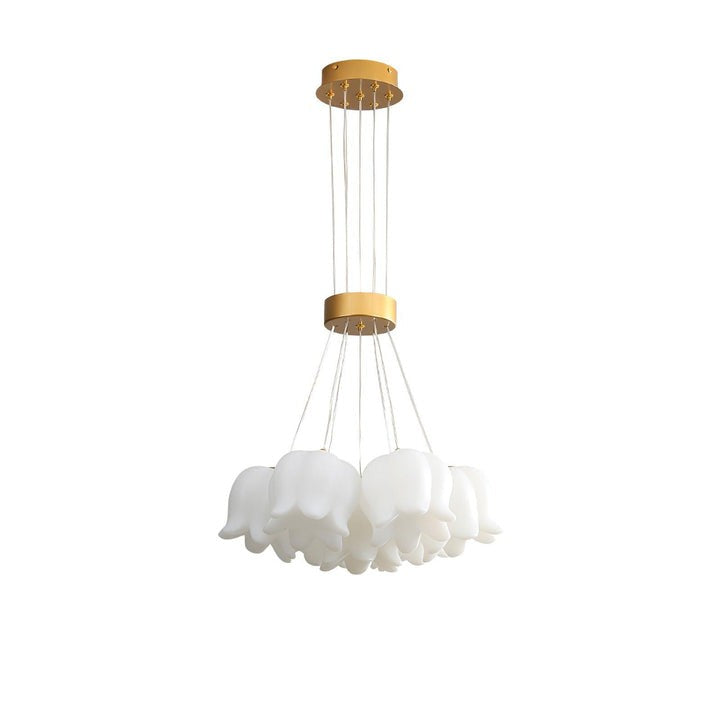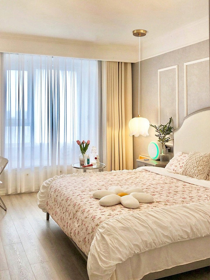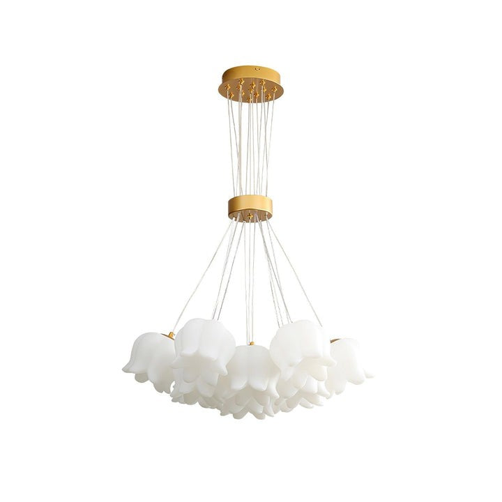 Elevate any room with a modern floral pendant light featuring acrylic petals and a soft LED glow. Its gold-finished frame and adjustable hanging height add elegance and versatility to living rooms, dining areas, or bedrooms.
