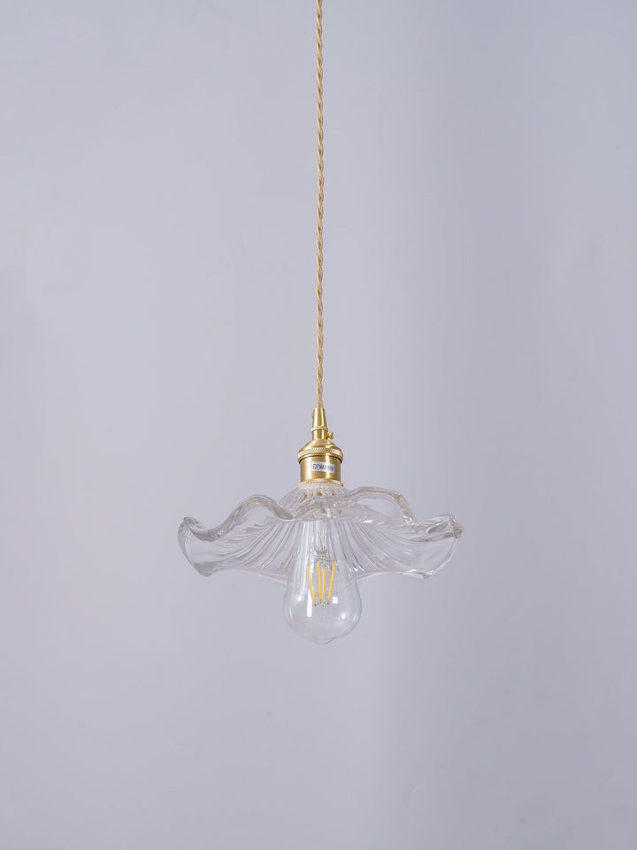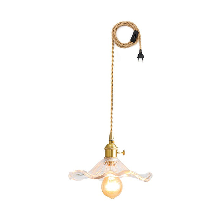 Elevate your decor with a vintage-inspired hibiscus swag light, featuring a fluted glass shade and brushed brass hardware for timeless elegance.