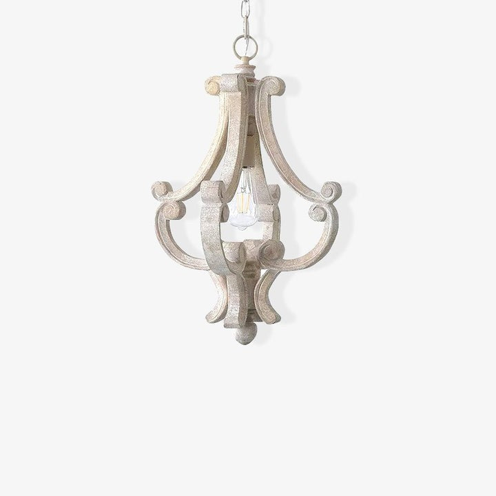 Immerse your space in French country charm with this metal and wood ceiling pendant light, featuring ornate c-shaped accents that cast a warm, inviting glow.