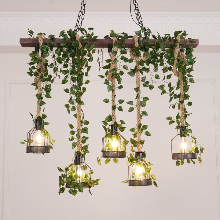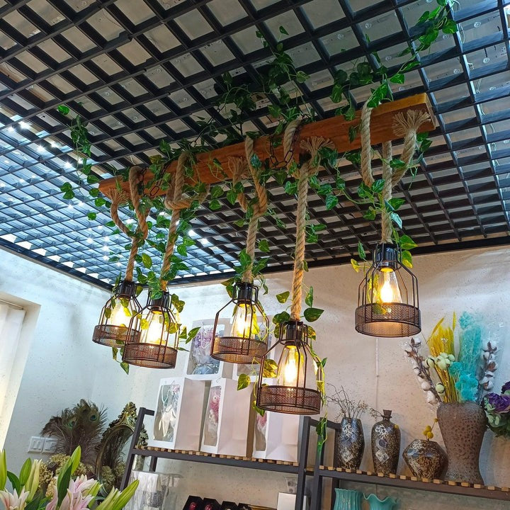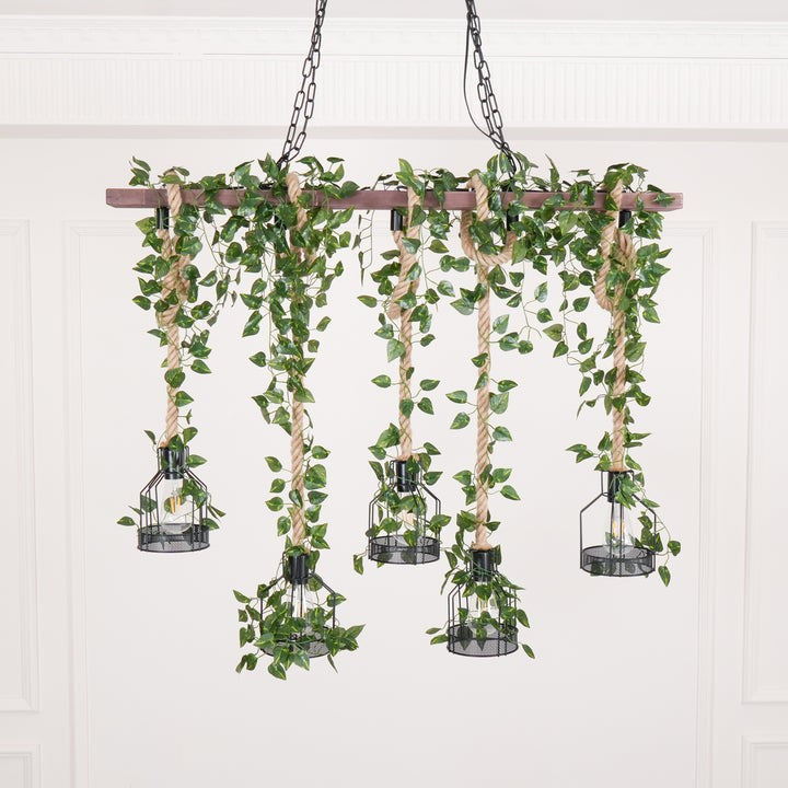 - Materials: Wood, metal, hemp rope, artificial greenery