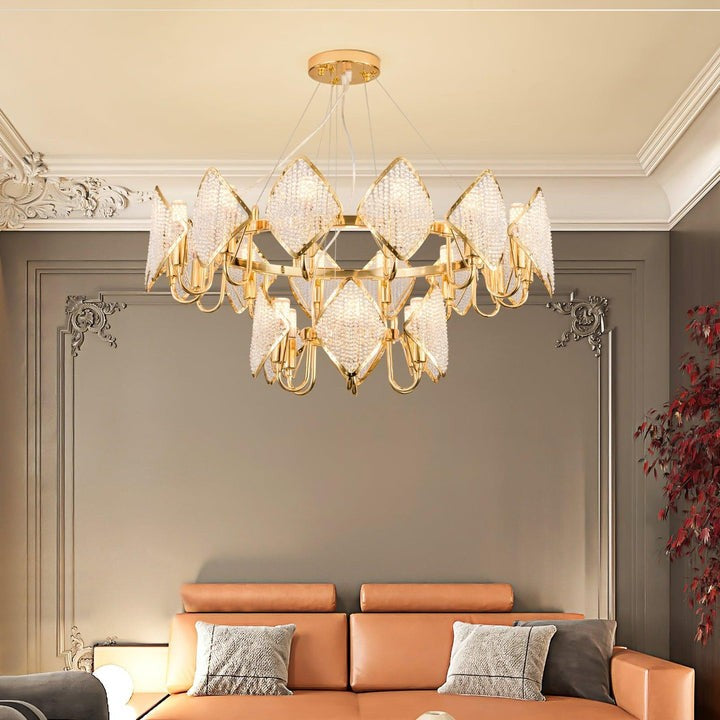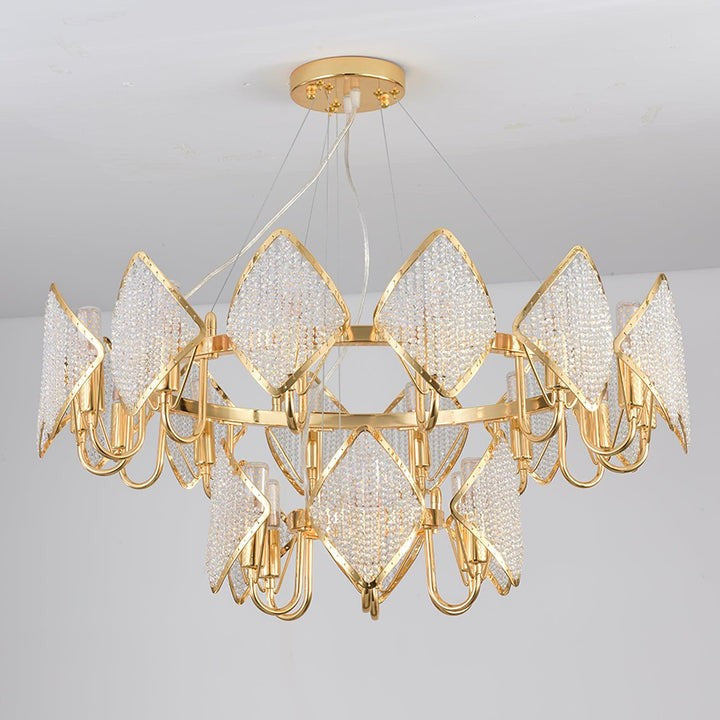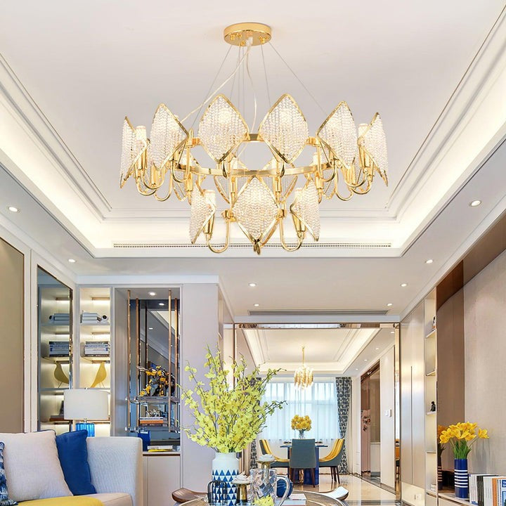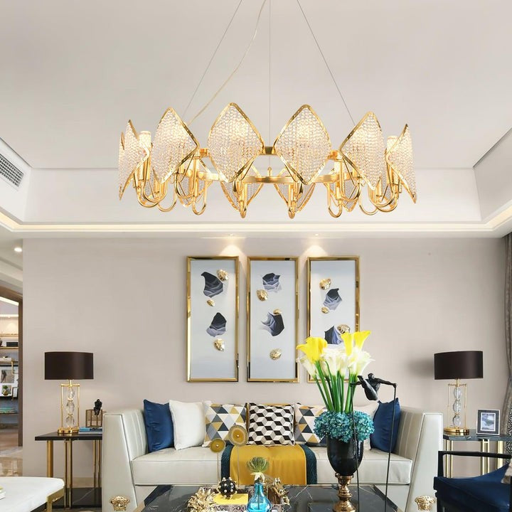 Illuminate your space with the Holly Multi-Light Crystal Ring Chandelier, blending iron structure with sparkling crystal accents for a luxurious focal point.