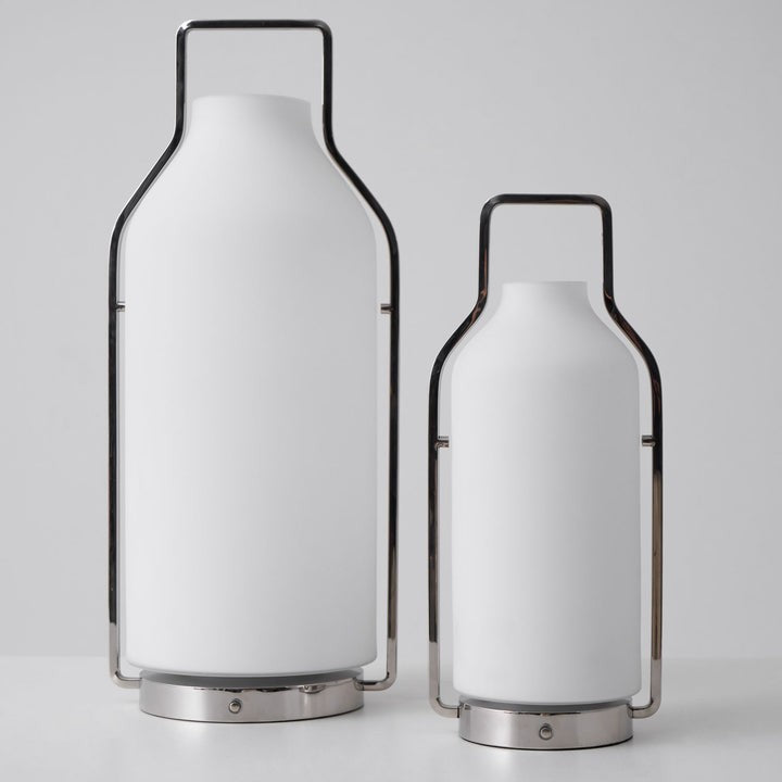 Embrace timeless charm with this lantern-inspired LED table lamp, combining a sculptural metal frame and frosted glass shade for a warm, ambient glow. Perfect for entryways, bedside tables, or shelves, its balanced design adds a refined accent to any indoor space.
