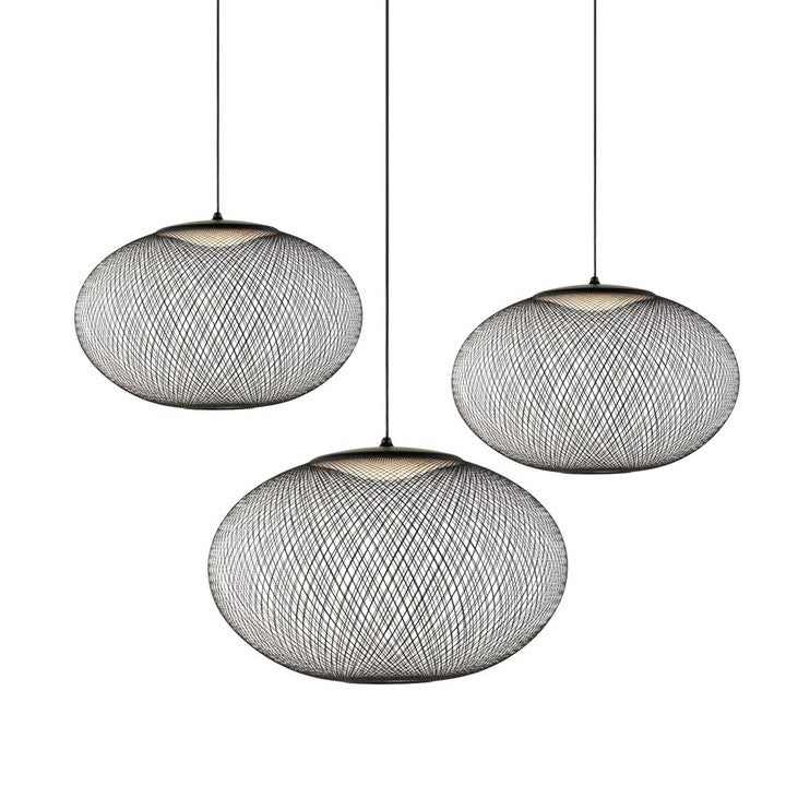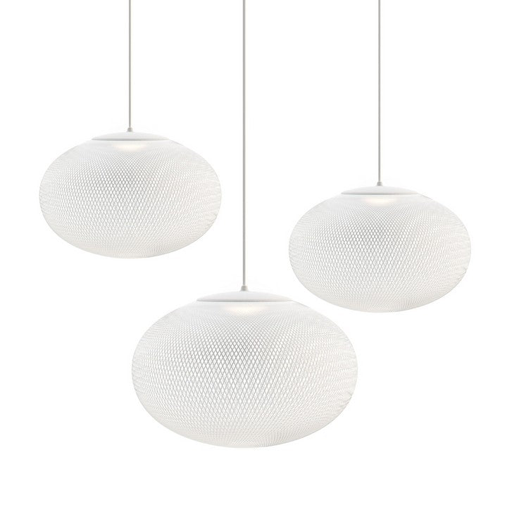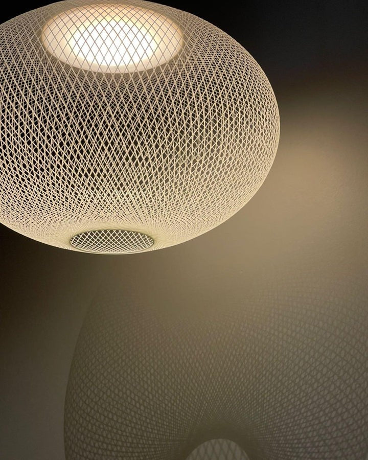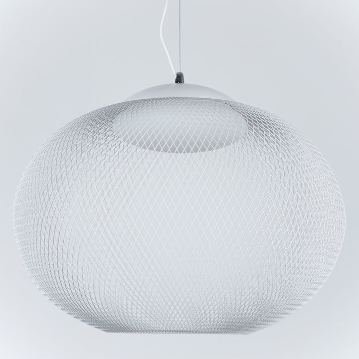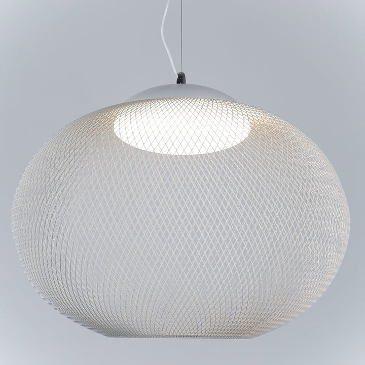 Bring modern industrial flair to your interior with this metal mesh pendant light featuring a sculptural lattice design and integrated LED illumination.