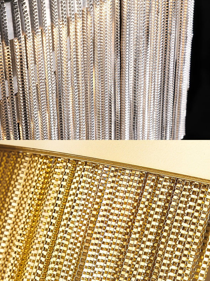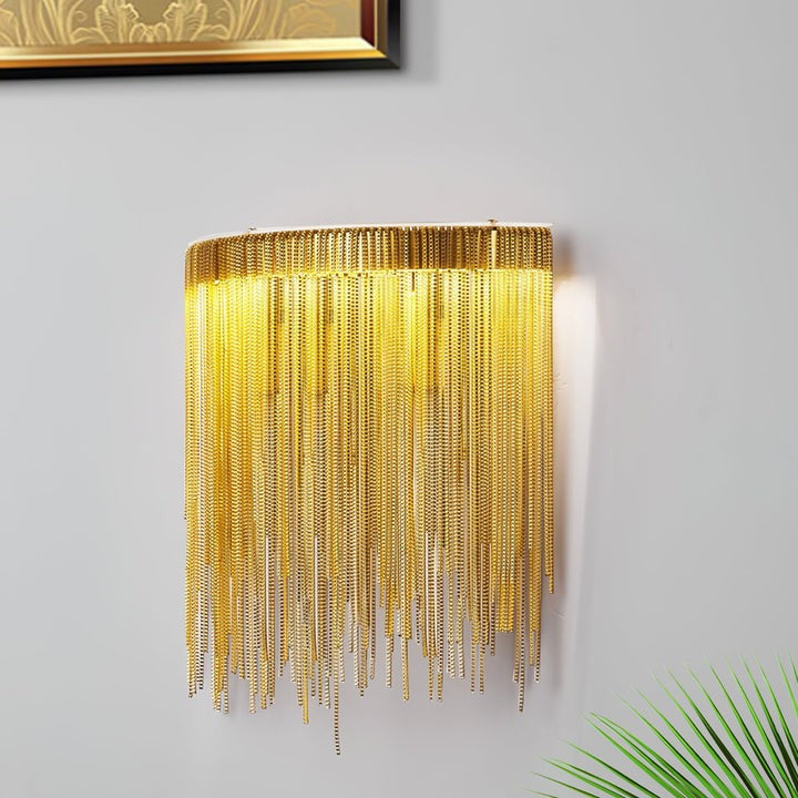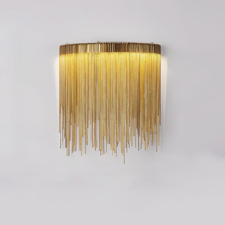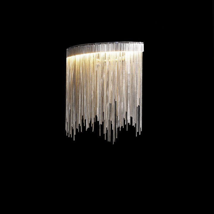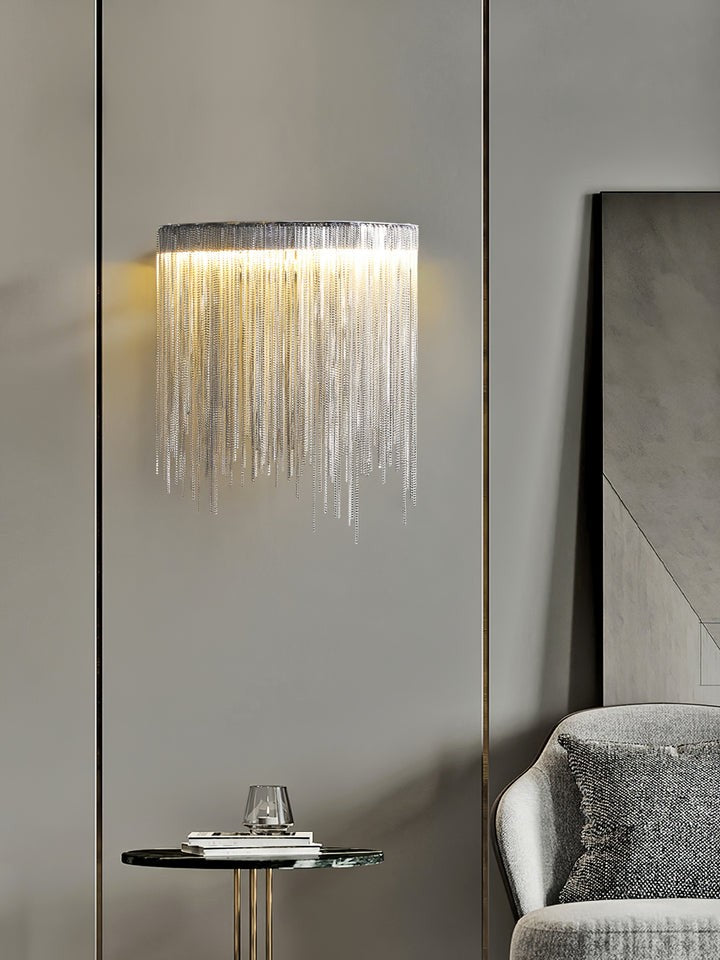 Elevate your interior with a cascading metal tassel wall lamp featuring energy-efficient integrated LEDs for a luxurious glow.