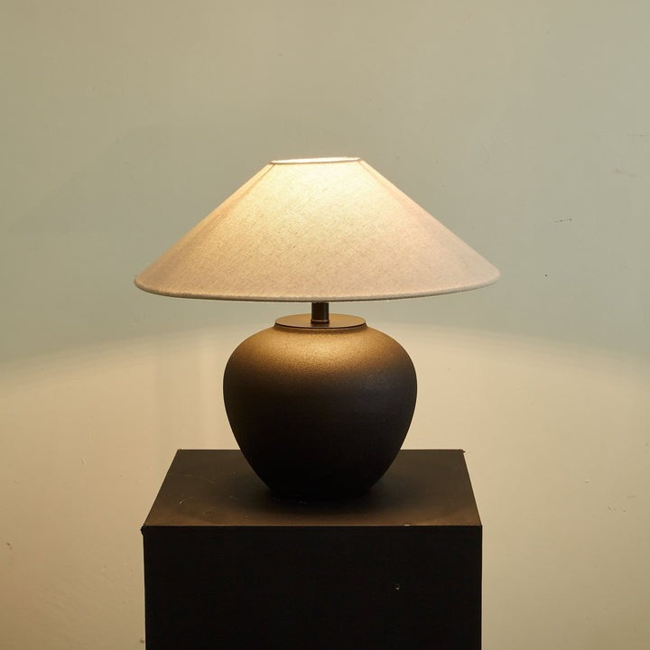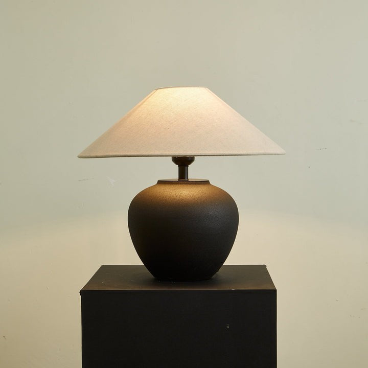 Elevate your interior with a sculptural table lamp featuring a matte-black ceramic base and a soft linen shade, blending organic form with minimalist design.