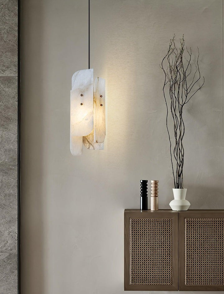 Bring natural elegance to your home with this mini alabaster pendant light featuring hand-cut shades and brass hardware.