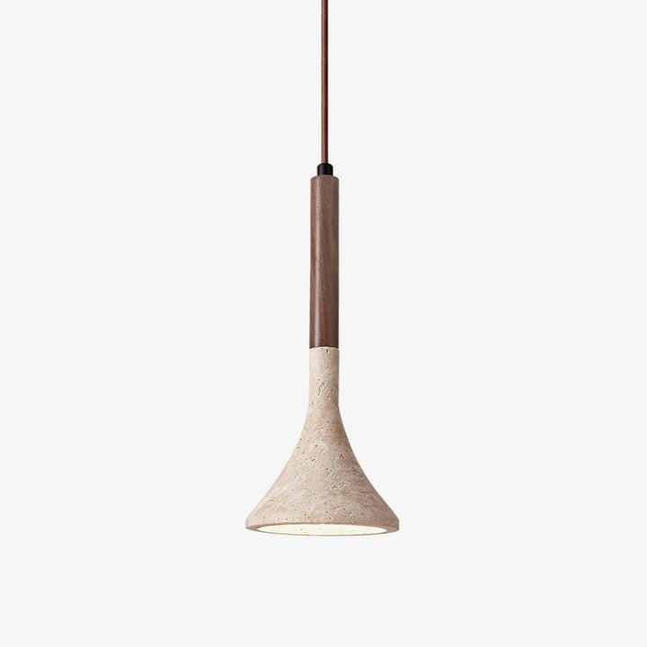 Bring serene natural beauty to your interior with this minimalist pendant light featuring a carved yellow travertine shade and warm wooden accents.