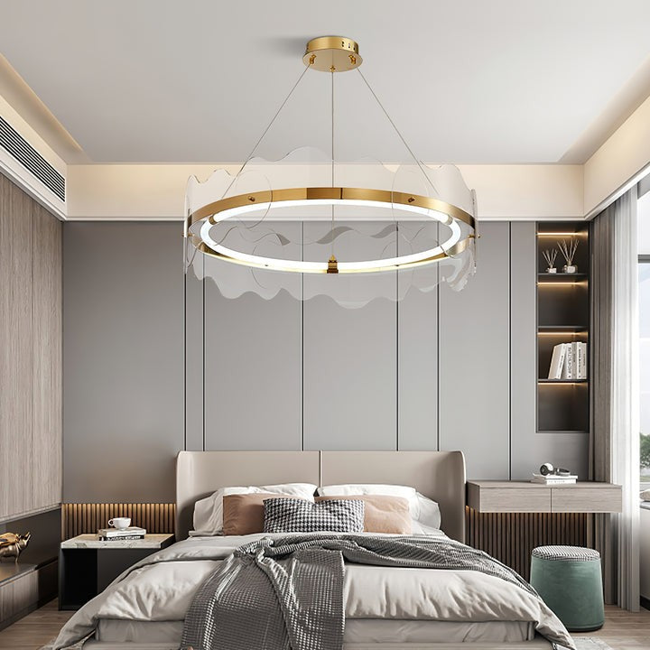 Elevate your space with this Modern Acrylic Wave LED Chandelier, blending contemporary style and soft, integrated lighting for a striking centerpiece.