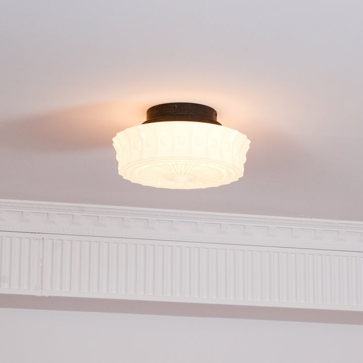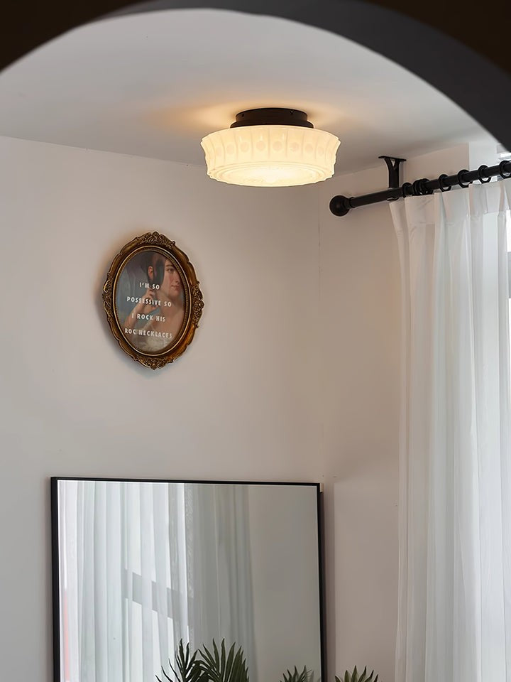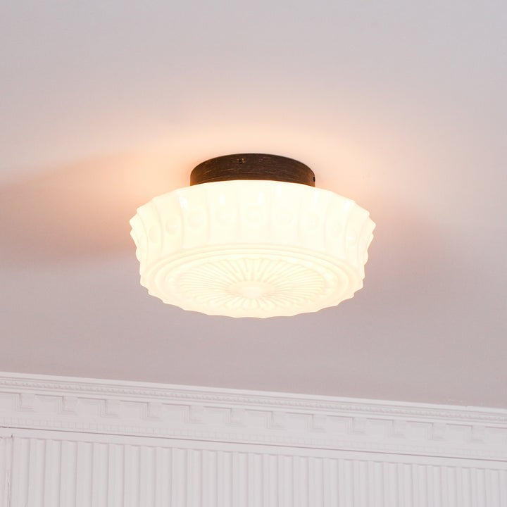 Elevate your decor with this sleek metal and glass ceiling light fixture, offering versatile finishes and two size options to suit any interior style.