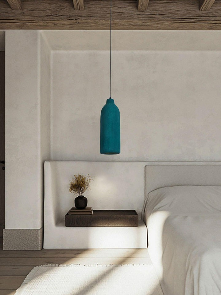 Elevate your interior with this modern pendant light, featuring a durable polystyrene construction and a deep green finish that evolves with age.
