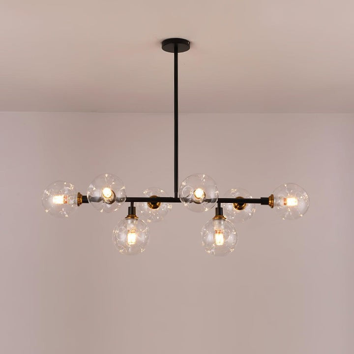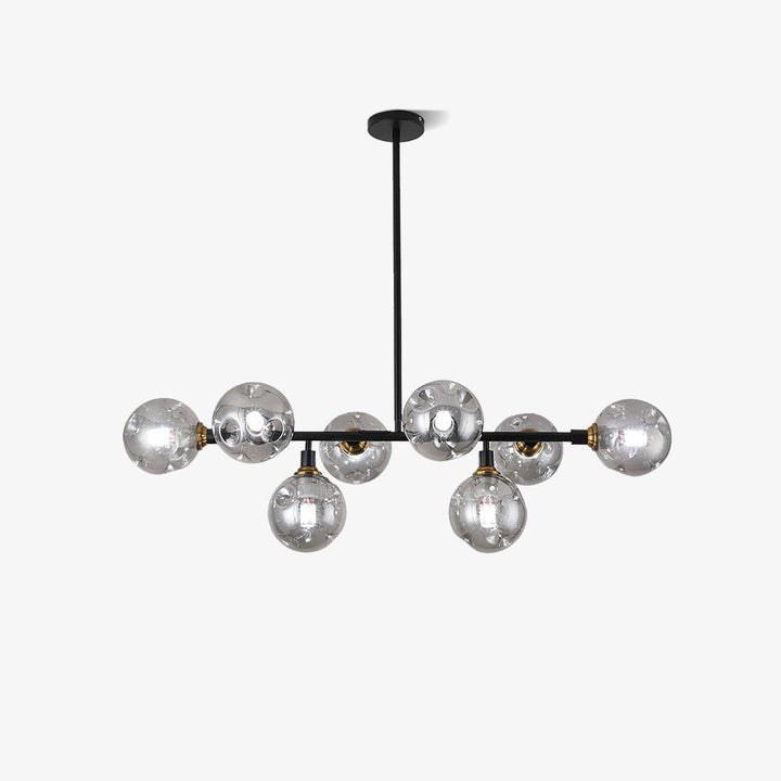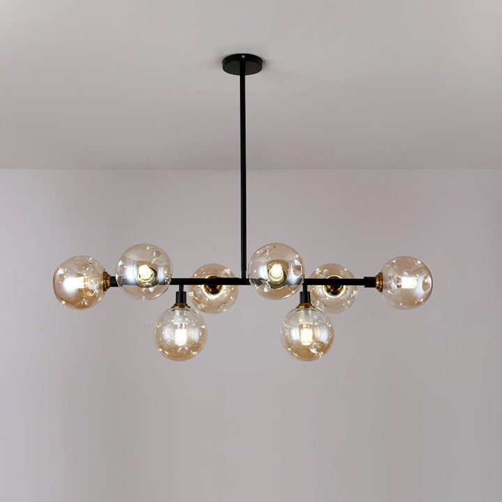 Elevate your dining or living space with this modern glass chandelier, featuring sleek black metal accents and customizable glass shades for a refined look.