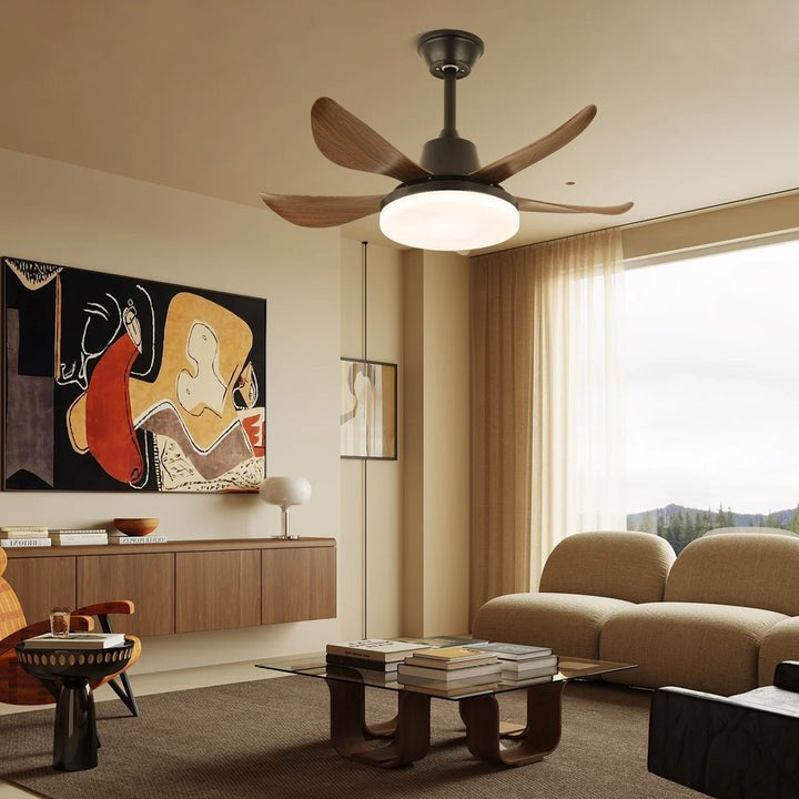 Modern Wood Blade Ceiling Fan with Integrated LED Light