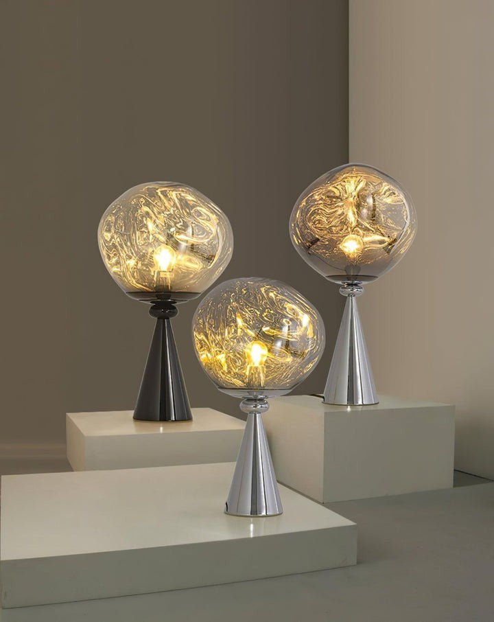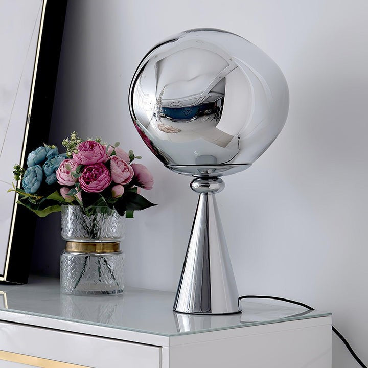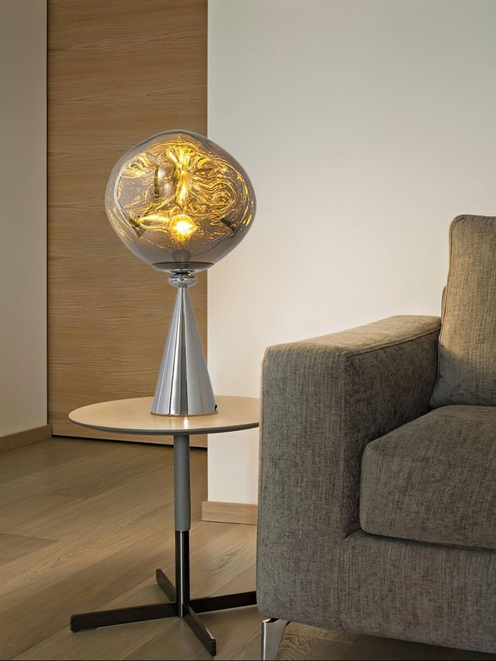 Experience a mesmerizing molten glass effect with this Lava Cone LED table lamp, seamlessly shifting from a sleek mirrored finish to a warm, ambient glow.