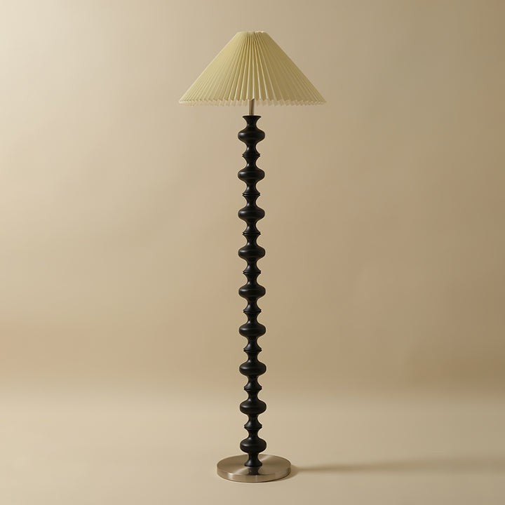 Rhythmic Sculpted Wooden Floor Lamp with Pleated Shade