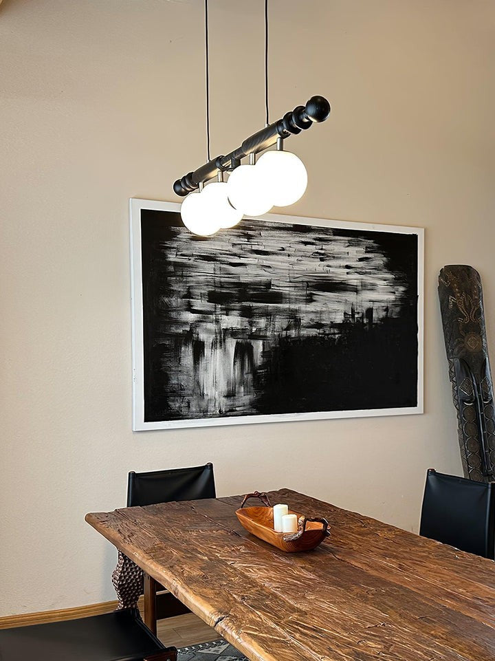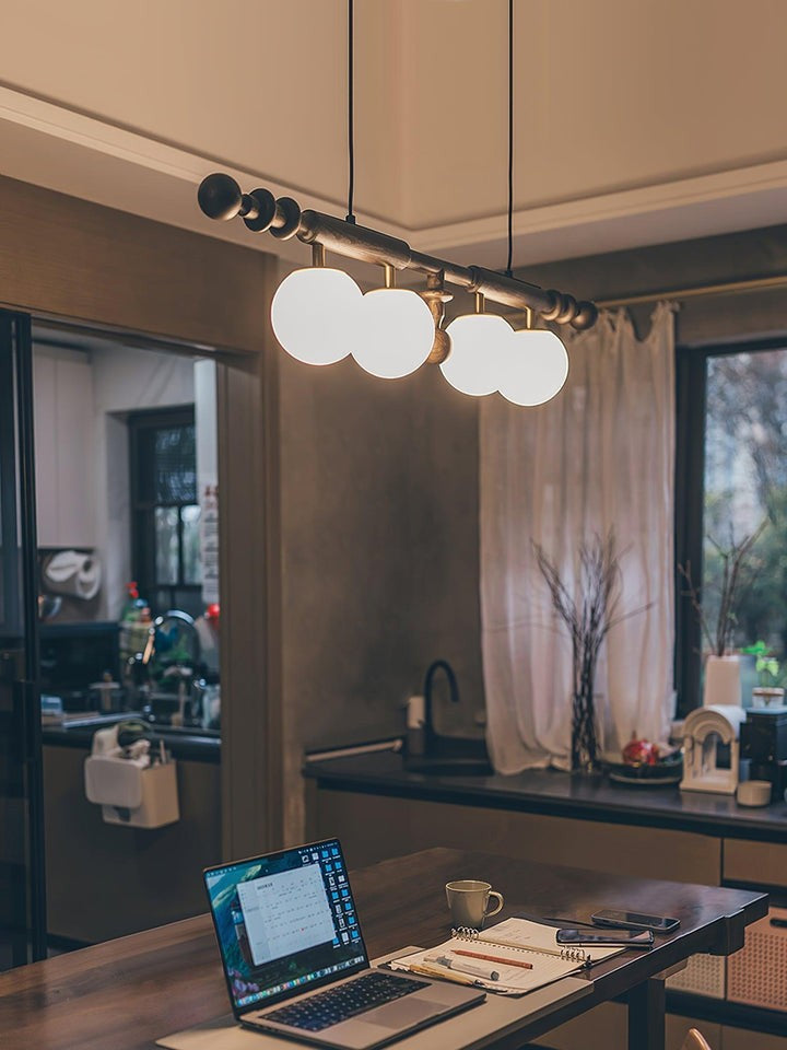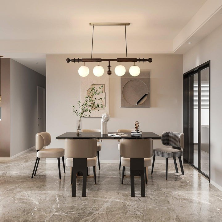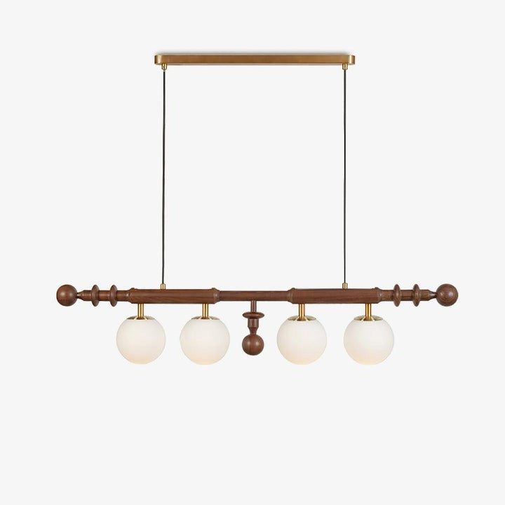 Elevate your dining room with this elegant Roman column chandelier, featuring walnut wood accents and glass shades for a timeless glow.
