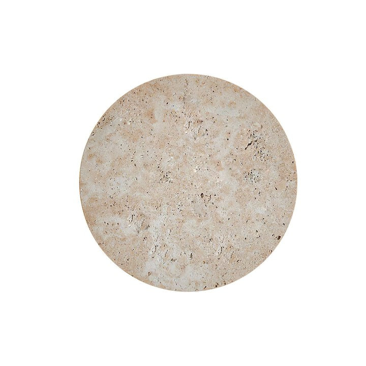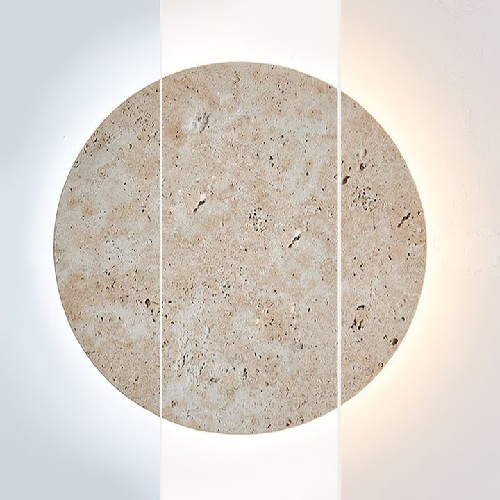 Illuminate your space with this elegant round travertine wall sconce, featuring integrated LEDs and a natural stone finish for a warm, modern ambiance.