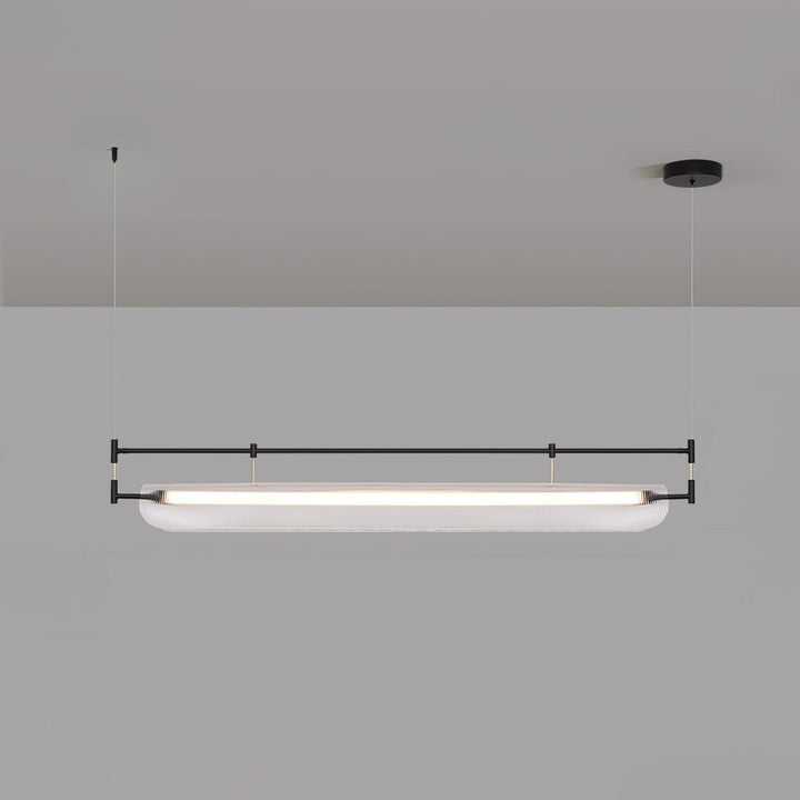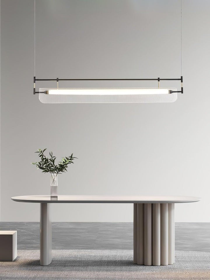 Discover a sleek LED linear chandelier that blends a slim metal frame with graceful acrylic arches to cast a soft, expansive glow—ideal for dining tables and contemporary interiors.