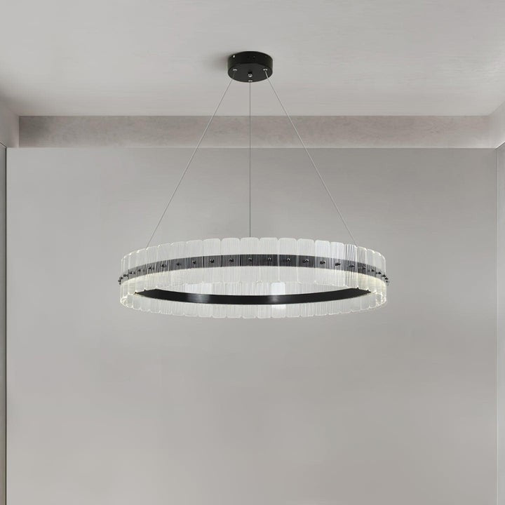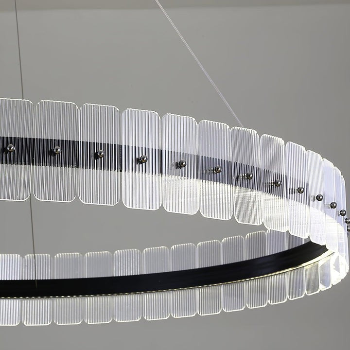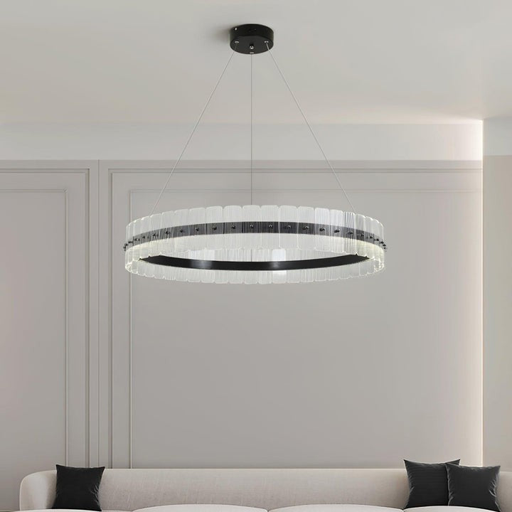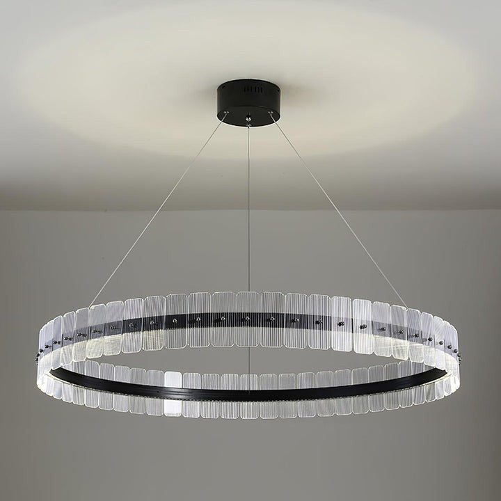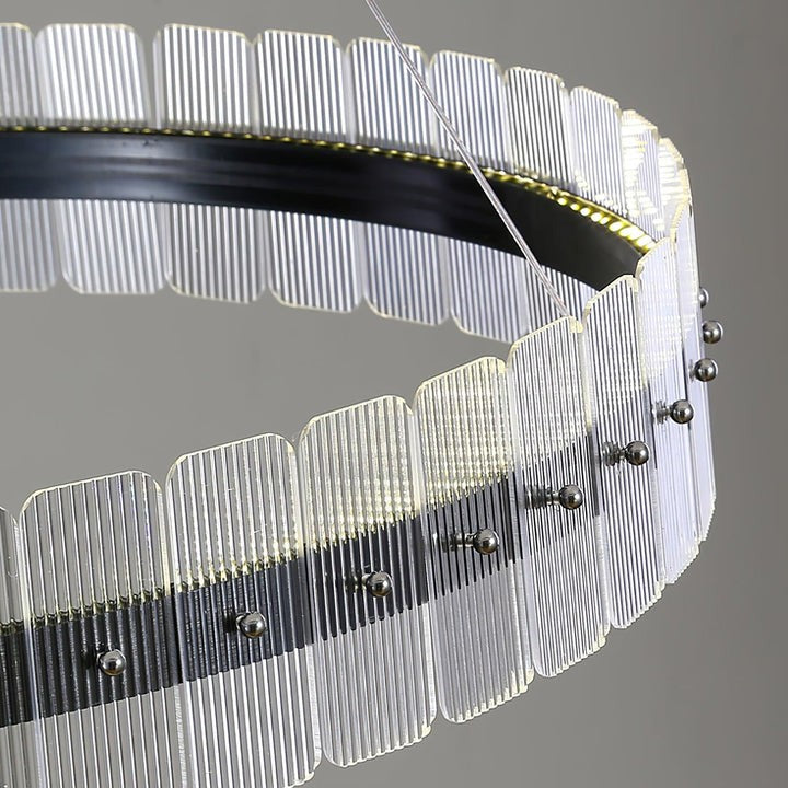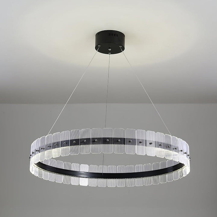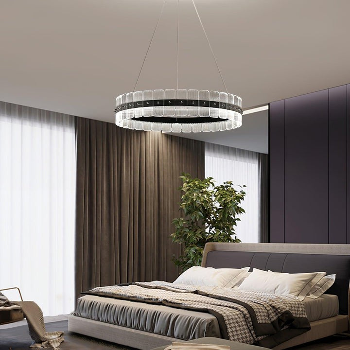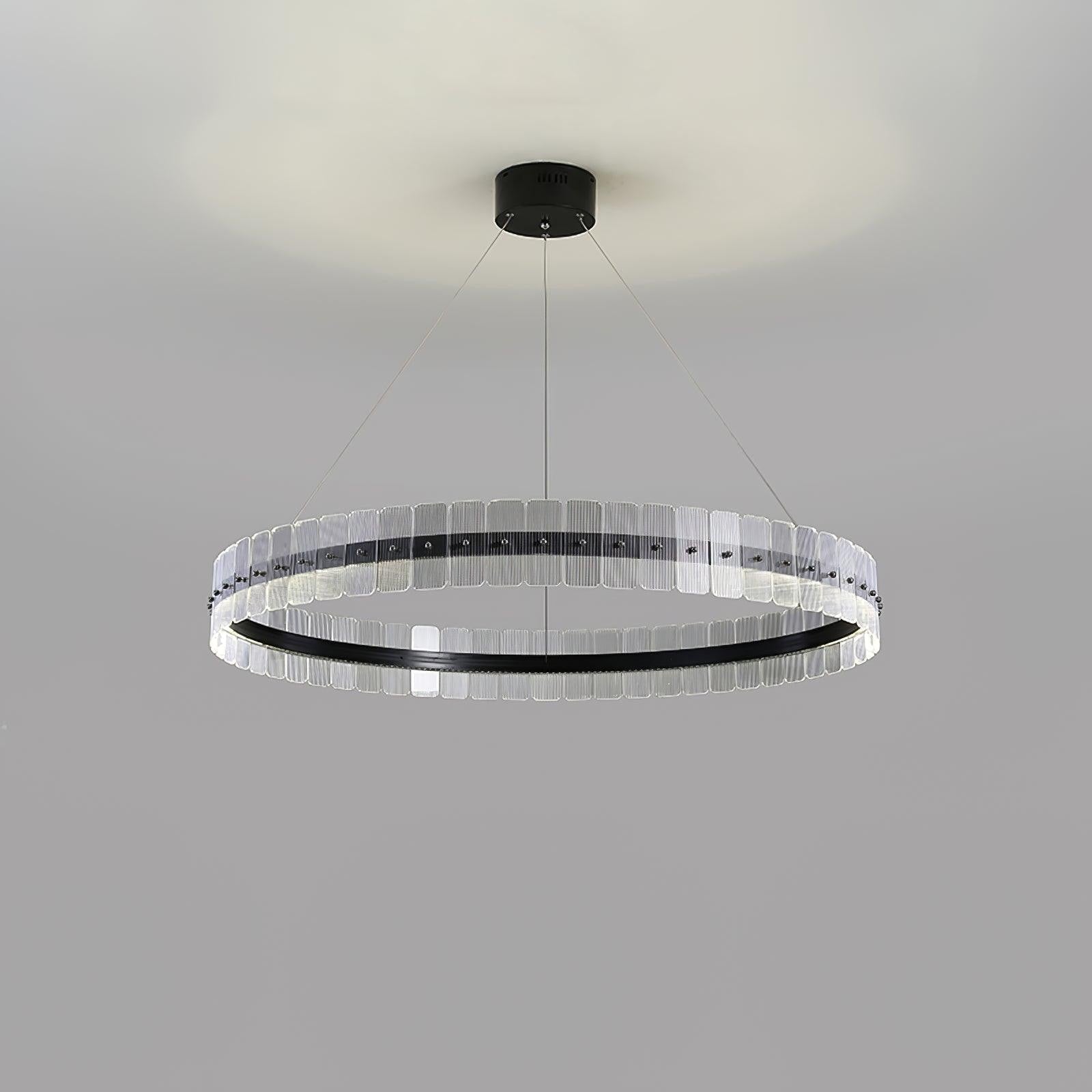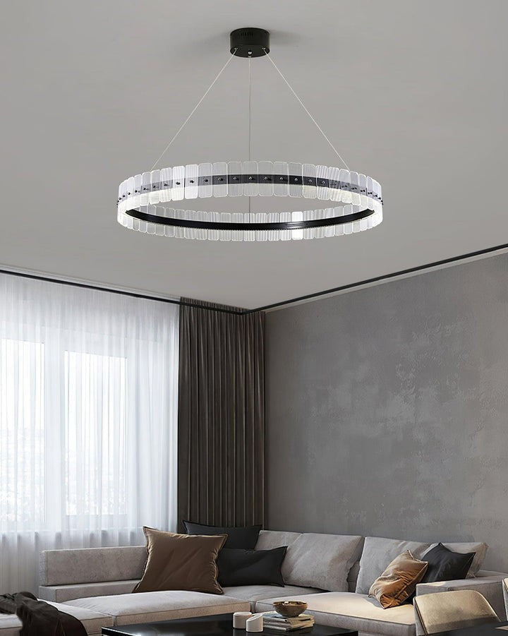 Brighten interiors with a modern LED chandelier featuring acrylic blocks that refract light into a sparkling display.