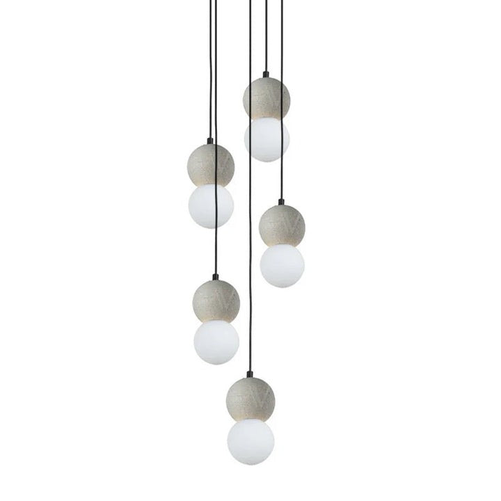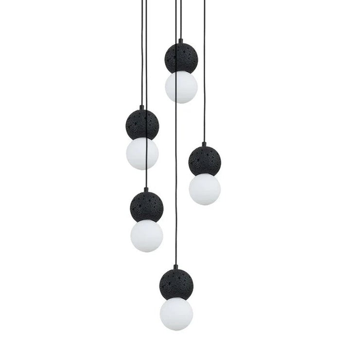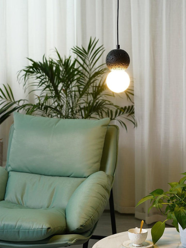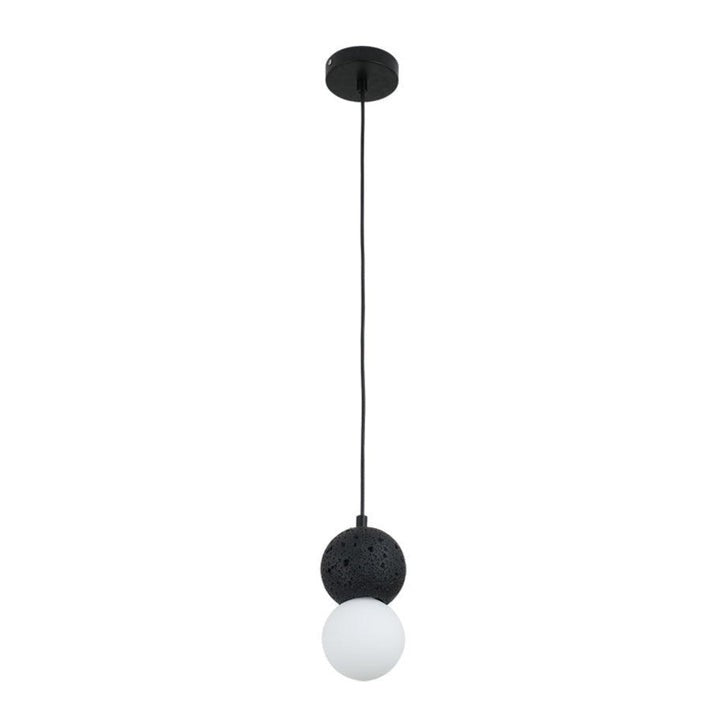 Spherical Volcanic Rock Pendant Light with Opal Glass Diffuser