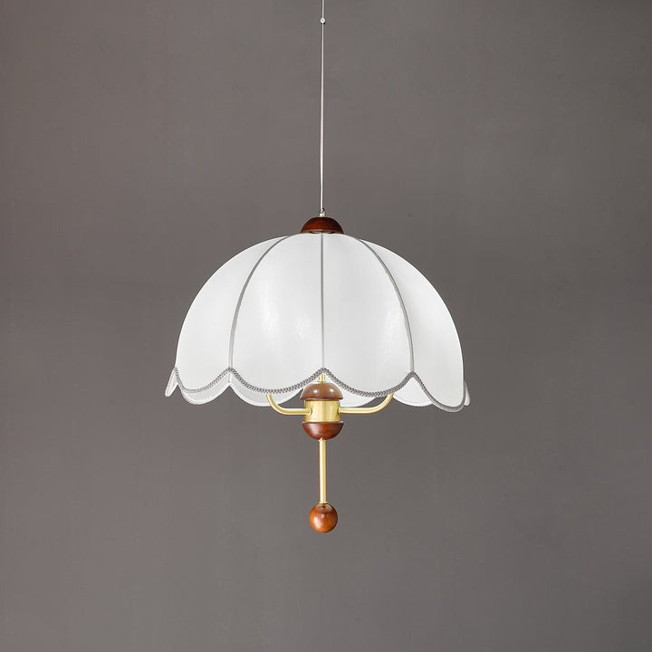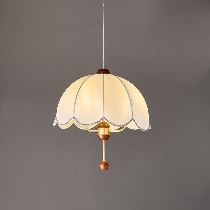 Infuse your space with a warm, floral-inspired glow from a scalloped bloom pendant light that melds vintage charm, modern lines, and natural wood accents.