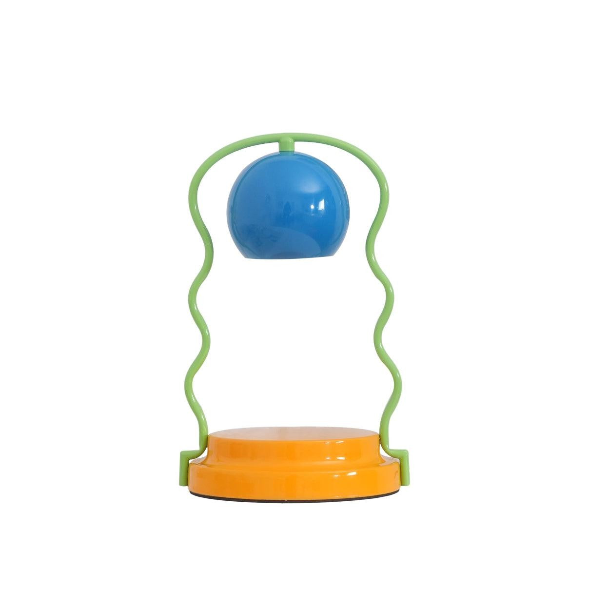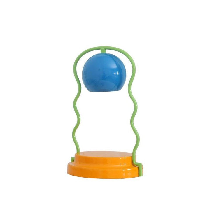 Bring a playful sculptural accent to your space with a spiral metal stand topped by a vibrant globe, blending artistic flair with warm illumination.