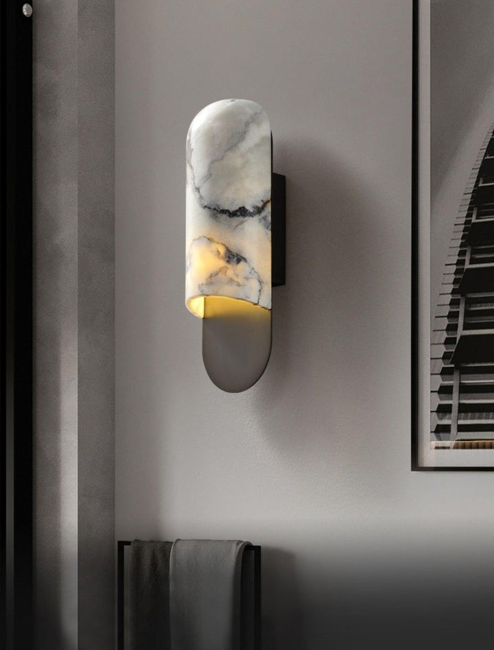 White Marble & Gold Metal LED Wall Light Sconce